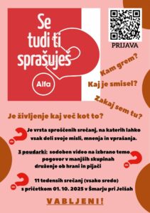 Vas zanimajo vprašanja vere in življenja? Pridružite se nam na Alfa srečanjih. Sklop enajstih srečanj se bo začel v sredo, 1. oktobra 2025, ob 18.30 uri.